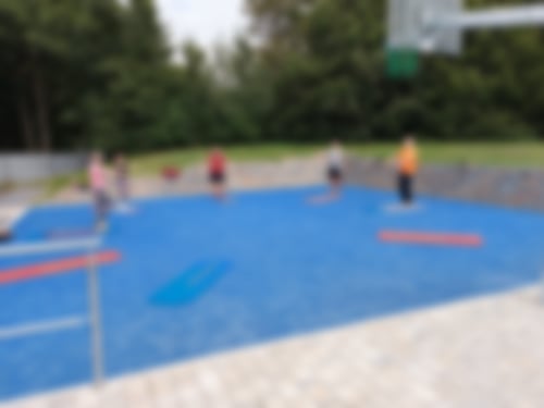 Der großzügige Outdoorbereich neben dem Therapiezentrum lädt zu Kursen, zum Basketball oder zum Tischtennis ein.